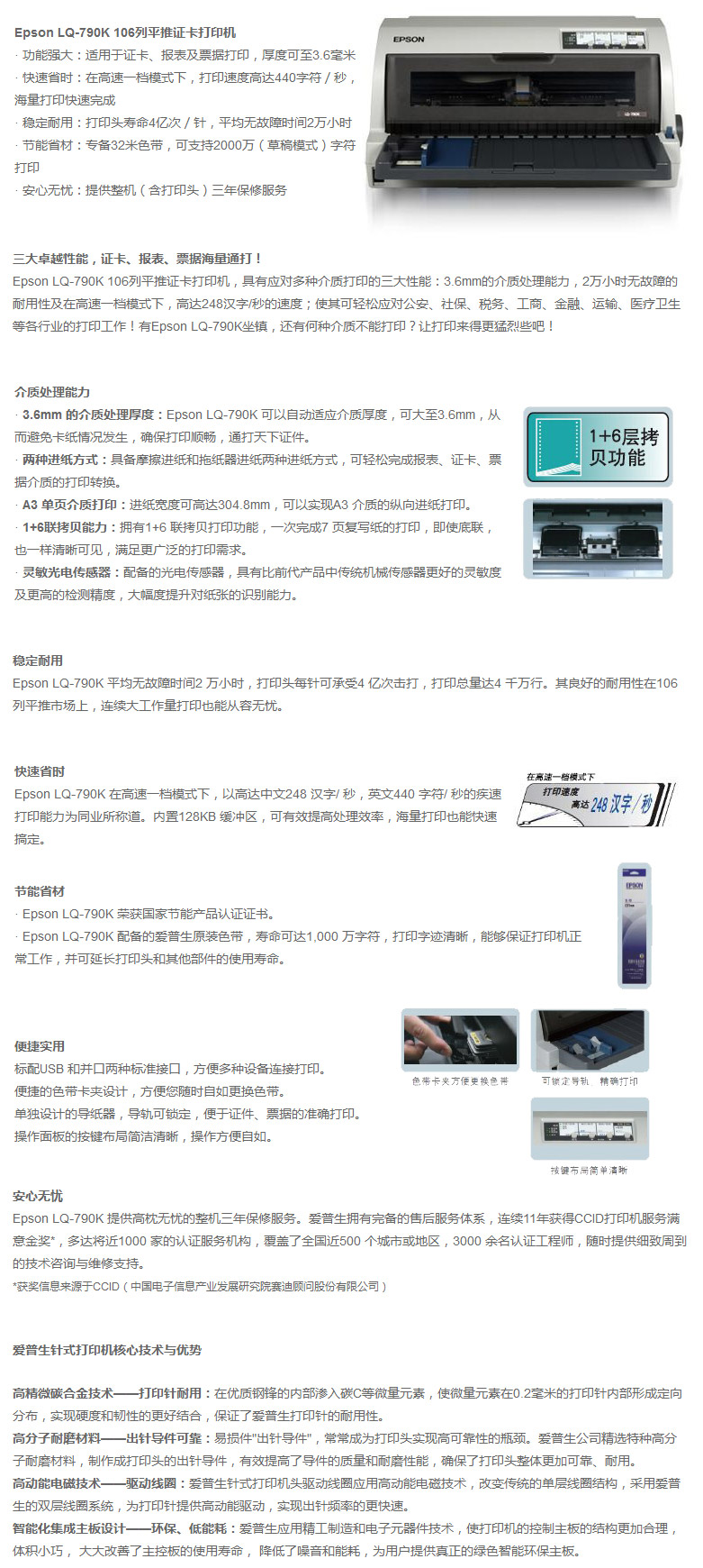 - 商品名稱:愛普生(EPSON)LQ-790K 針式打印機(106列平推式 支持A3幅面 3.6mm介質處理能力)
